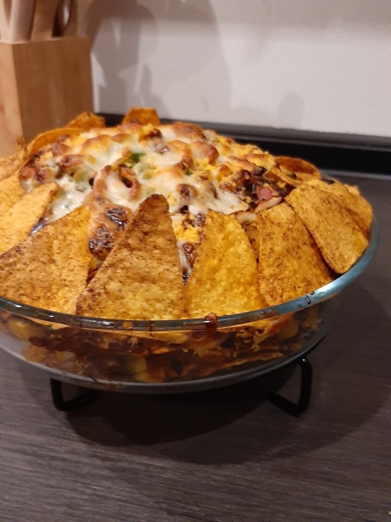 Käse-Nachos sind ein beliebter Partyklassiker, insbesondere für Silvester. Einmal vorbereitet, kann sich jeder mit den Fingern an dem großen Nachovulkan bedienen und nach allen Regeln der Kunst genießen.
