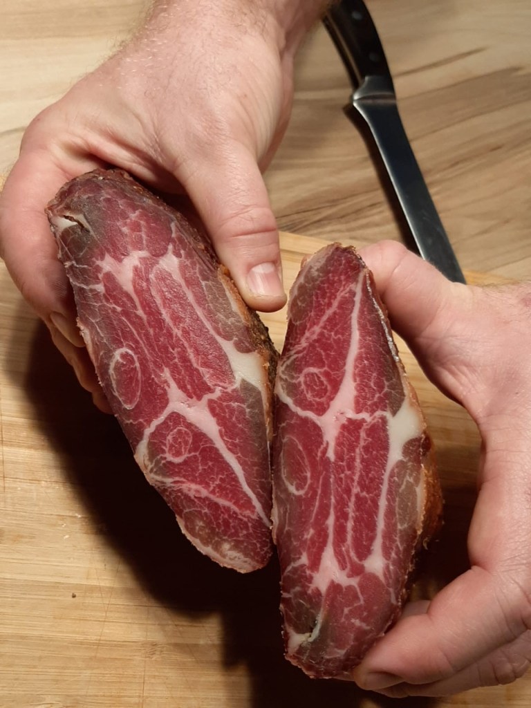 Das Rezept zu dem Räucherschinken findet ihr hier: Räucherschinken aus dem Schweinenacken (Coppa)