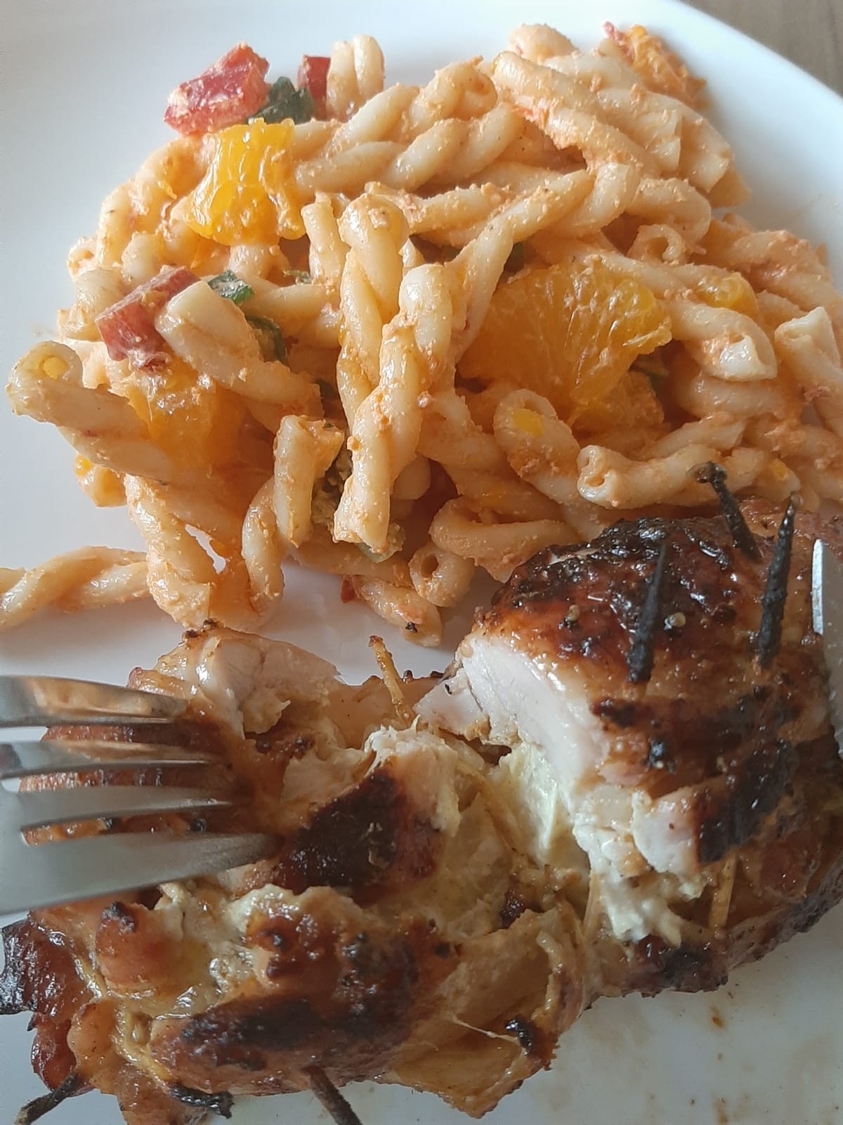 Nudelesalat ist im deutschsprachigen Raum wohl die Grillbeilage schlechthin. Diese Version verbindet jedoch eine scharfe Würze mit fruchtiger Erfrischung und macht ihn zur perfekten Beilage bei hohen Temperaturen.