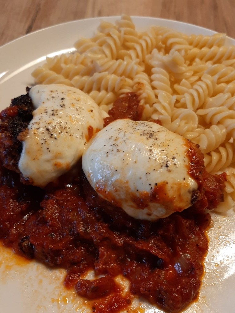 Anschließend können die Frikadellen mit der Soße serviert werden. Dazu passen hervorragend sämtliche Sorten Pasta (ich bevorzuge hier Penne oder Fussili), aber auch Reis oder frisches Olivenbrot.