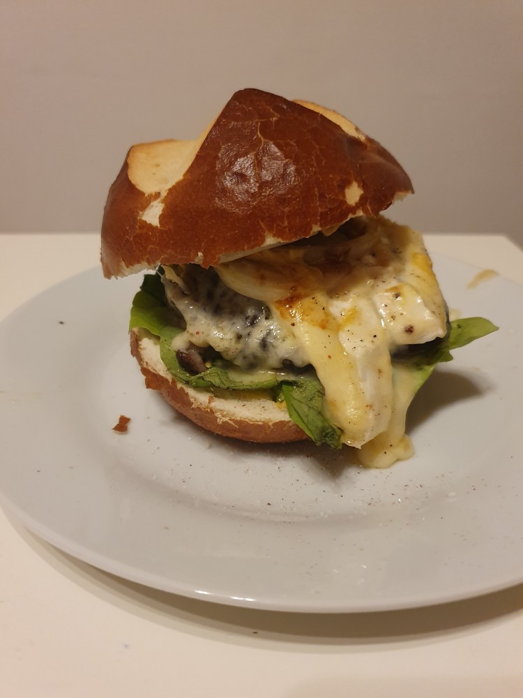 Wenn ihr noch Käse auf dem Patty schmelzen wollte (hier eignet sich ein würziger Cheddar) solltet ihr diesen ca. 2 Minuten vor dem Ende einfach auf das Patty drauflegen (evtl. noch etwas pfeffern, bzw. das Patty pfeffern bevor der Käse darauf gelegt wird). Wenn ihr einen Grill mit Deckel verwendet, adnn einfach den Deckel schließen, ansonsten gibt es sogenannte Burgerhauben aus Edelstahl, die man über die Burger stülpen kann. Insbesondere beim Verwenden einer Feuertonne mit Platte sind diese äußerst empfehlenswert.