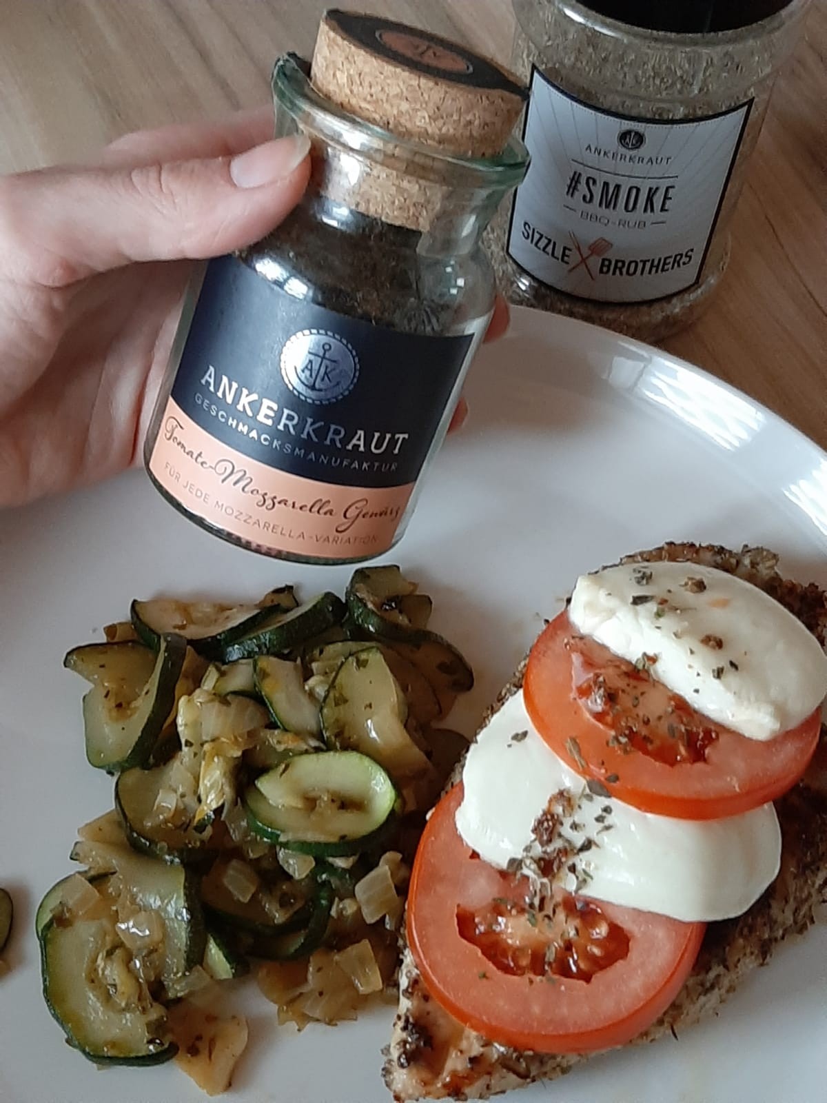 Kalorienarm und mediterran. Dieses Gericht ist für alle, die mal etwas gesünder grillen wollen und ist zudem noch in wenigen Minuten zubereitet. Zutaten: 3 Hähnchenbrustfilets 2 mittelgroße Tomaten 1 Mozarella 1 Zucchini 1 große Zwiebel 2 EL Olivenöl 2 Knoblauchzehen 3 – 4 EL #Smoke von Ankerkraut Ankerkraut „Tomaten-Mozzarella-Gewürz“ Zubereitung: Die Hähnchenbrustfilets kurz abwaschen und„Tomaten-Mozarella-Hähnchenbrust mit Zucchini-Gemüse“ weiterlesen